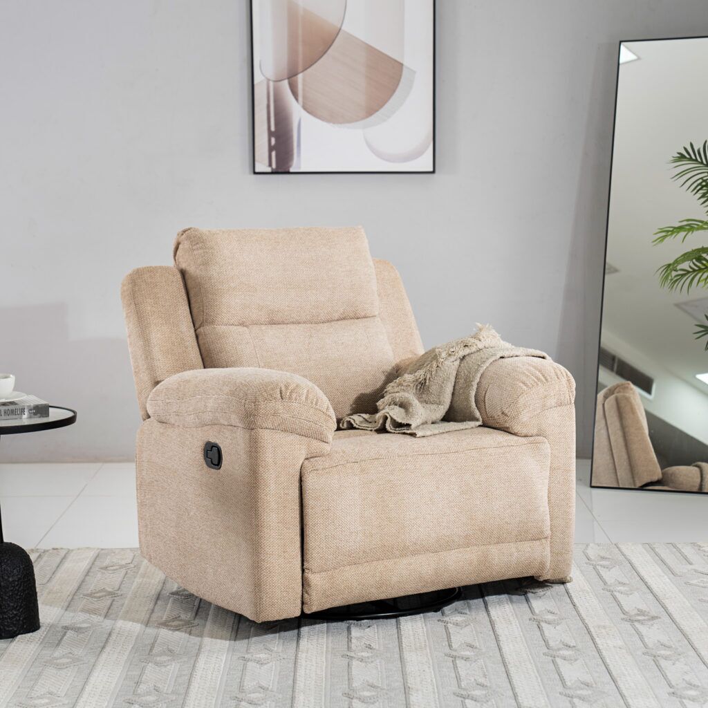 Aaron Single recliner offers ultimate comfort with an adjustable backrest and footrest, allowing you to relax in multiple positions. Perfect for lounging and ergonomic support.