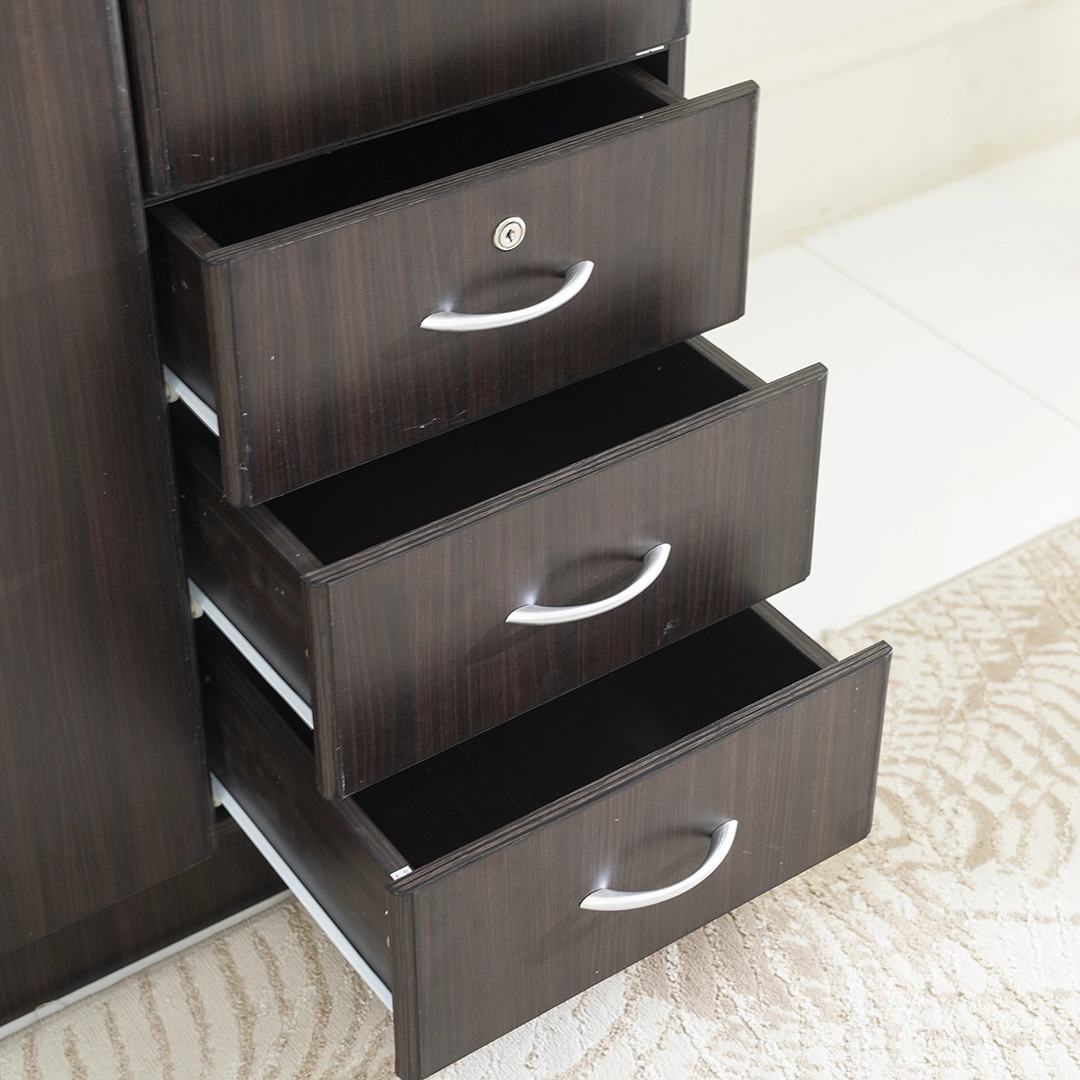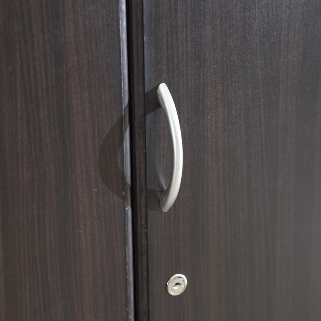 The Adelina is a 3-door wardrobe finished in a Walnut color — shade that blends easily with modern or contemporary bedroom décor. It offers a practical solution for organizing clothing while saving space.