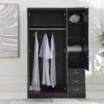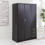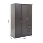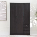The Adelina is a 3-door wardrobe finished in a Walnut color — shade that blends easily with modern or contemporary bedroom décor. It offers a practical solution for organizing clothing while saving space.