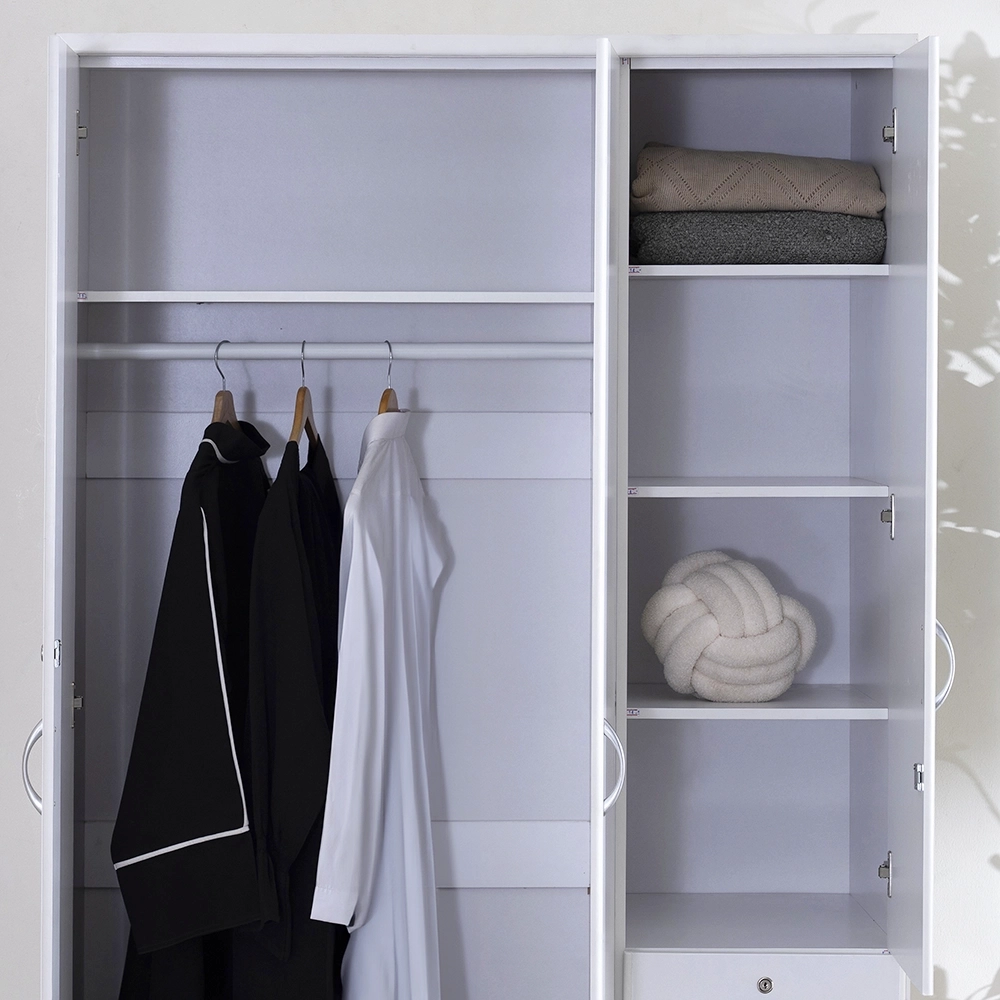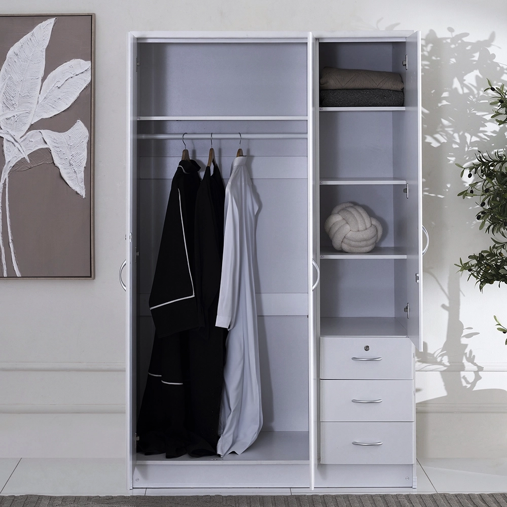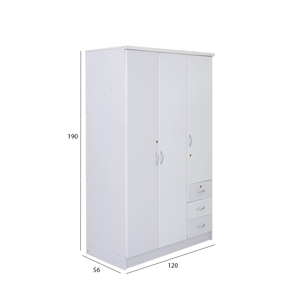 The Adelina is a 3-door wardrobe finished in a White color — shade that blends easily with modern or contemporary bedroom décor. It offers a practical solution for organizing clothing while saving space.