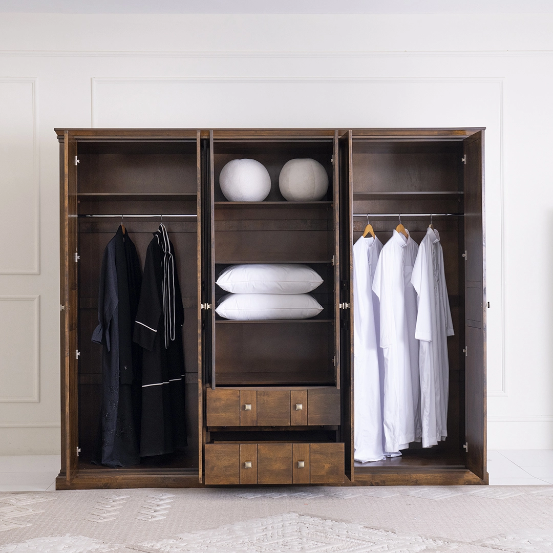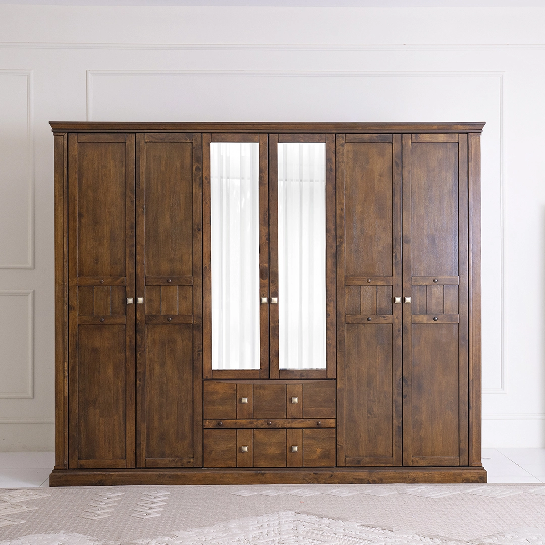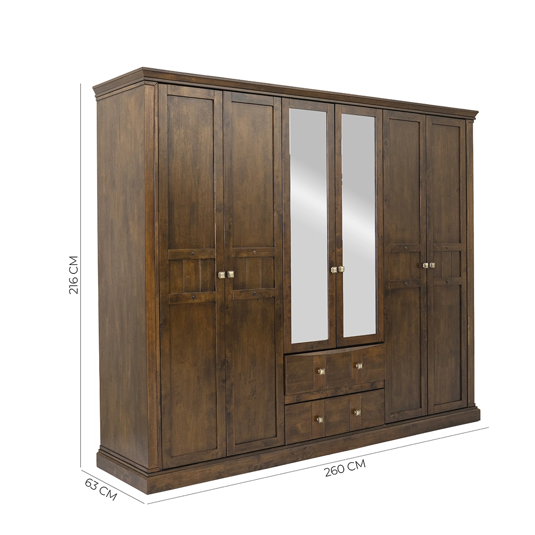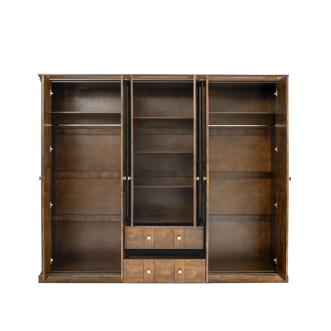 Alexndia 6 Door Wardrobe in Brown offers ample storage with a modern, streamlined design. Featuring a rich wood finish paired with sleek grey panels, it brings both style and functionality to any bedroom.