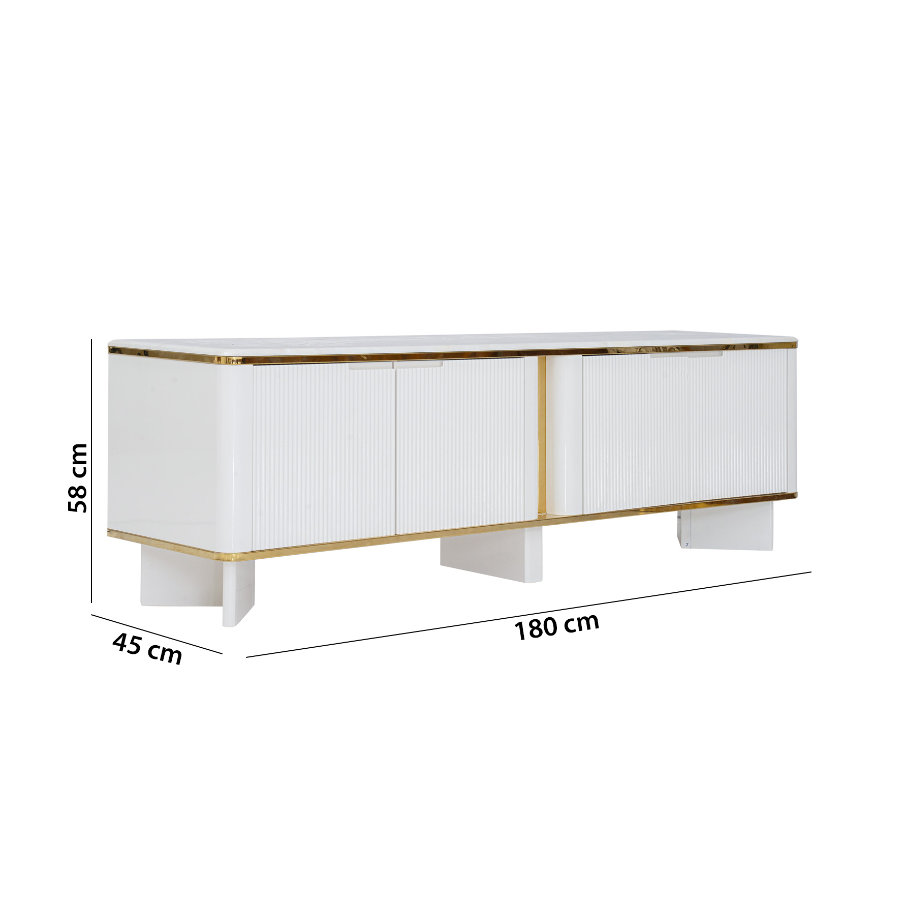 The Amira Tv Unit is a luxurious and elegant piece of furniture designed to elevate your living room or entertainment space.