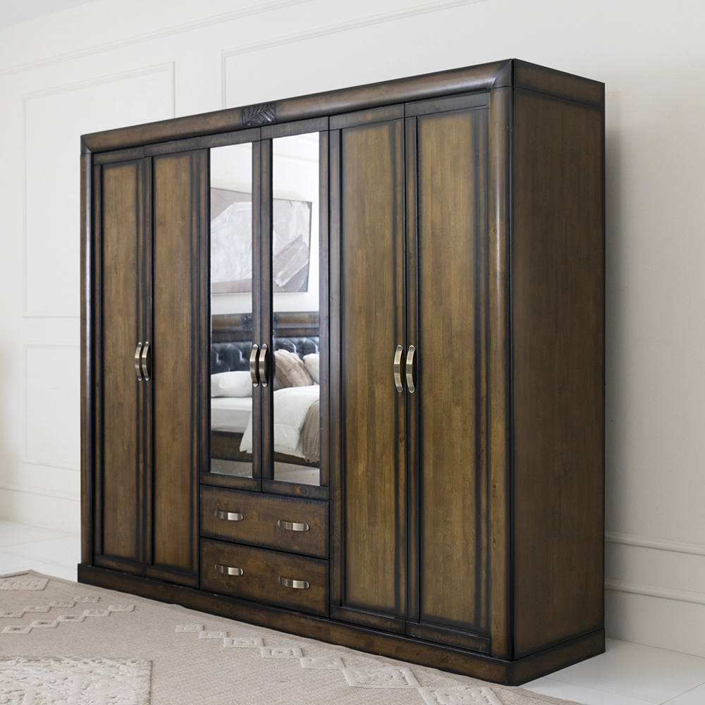 Aris 6 Door Wardrobe in Brown offers ample storage with a modern, streamlined design. Featuring a rich wood finish paired with sleek grey panels, it brings both style and functionality to any bedroom.