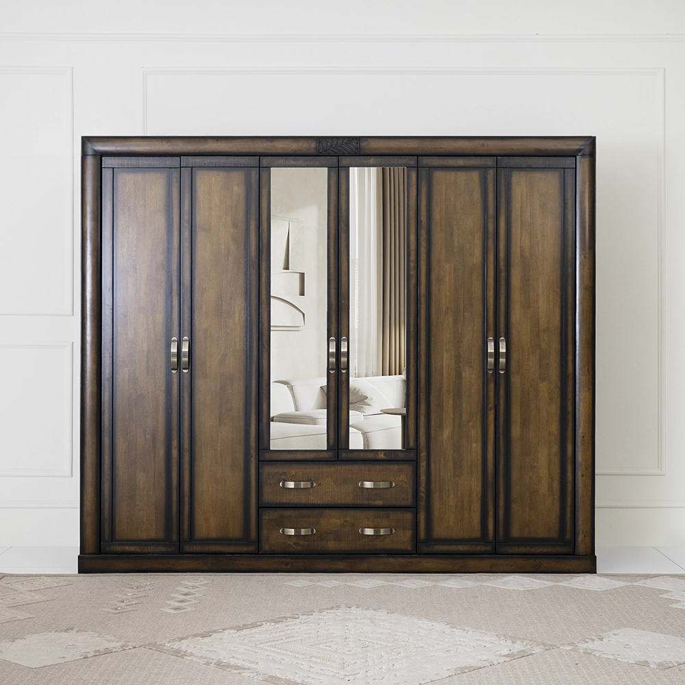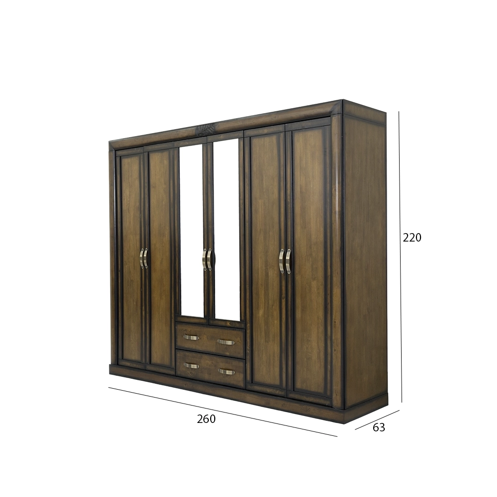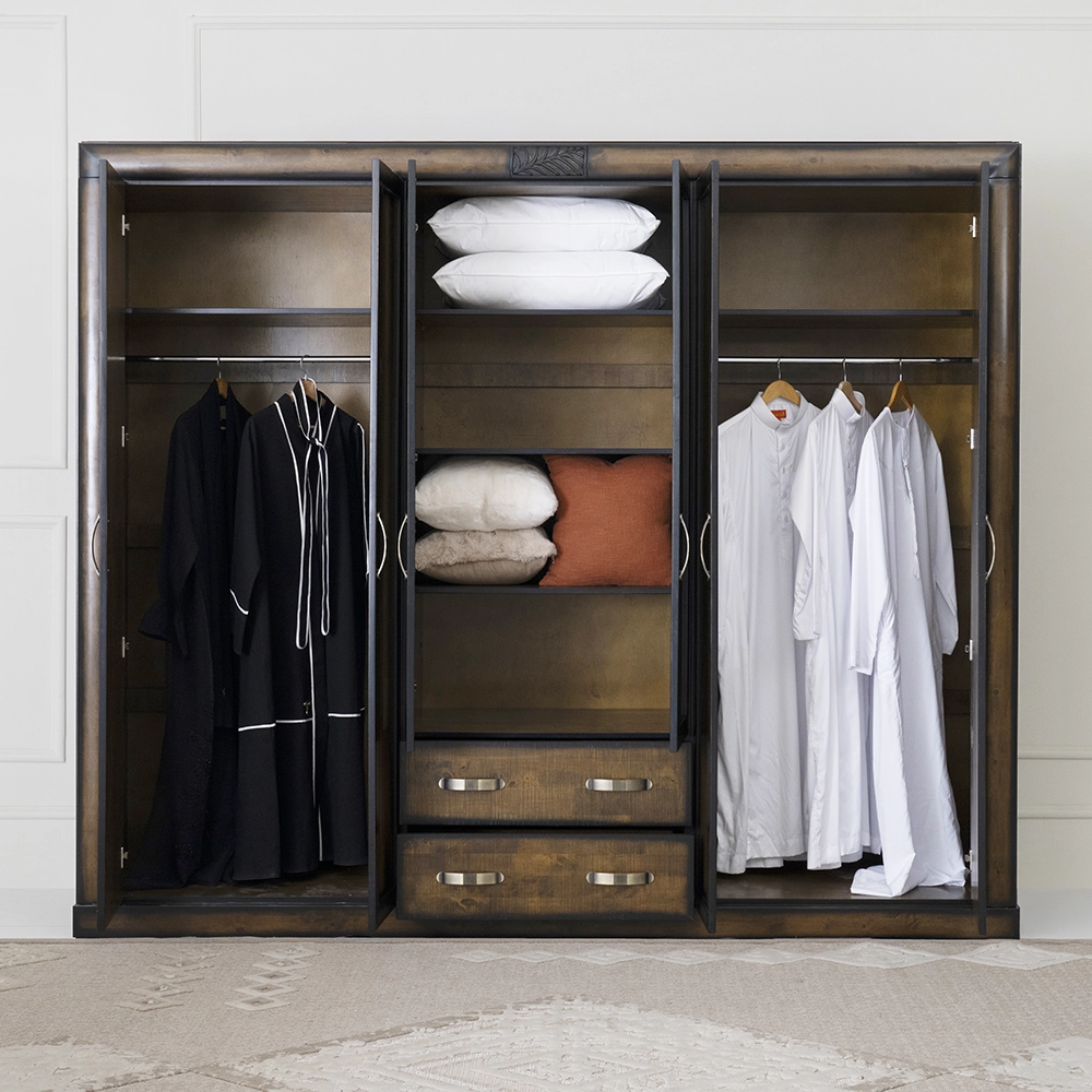 Aris 6 Door Wardrobe in Brown offers ample storage with a modern, streamlined design. Featuring a rich wood finish paired with sleek grey panels, it brings both style and functionality to any bedroom.