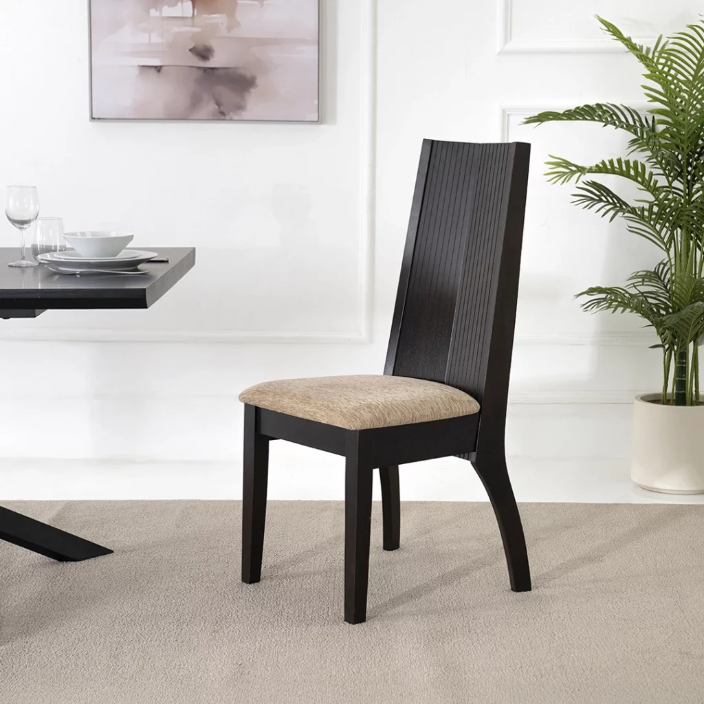 A versatile and stylish dining chair designed to complement any table setting. Crafted for comfort and durability, it features a supportive backrest and a well-cushioned seat, making every meal a relaxing experience.