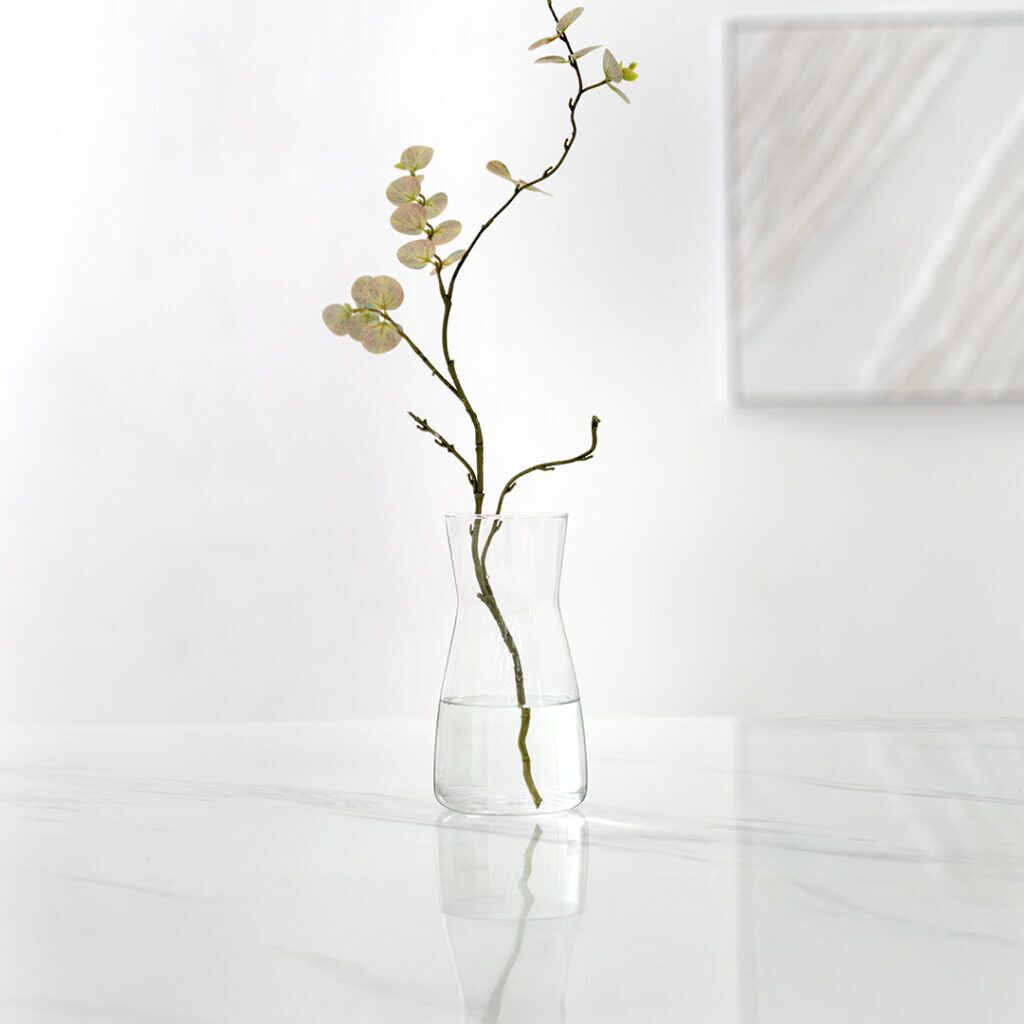 An Exquisite Clear Glass Vase, Blending Contemporary Elegance and Timeless Charm, Perfect for Showcasing Flowers or Standing as a Striking Decor Piece.