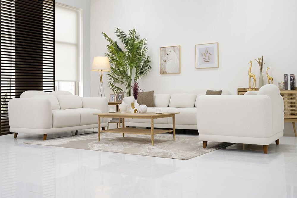 Discover The Royal Furniture’s Atom Sofa Set, elegantly designed with 12 cm Wooden Legs and featuring a comfortable 30 soft foam density seat cushion for an exquisite blend of style and relaxation.