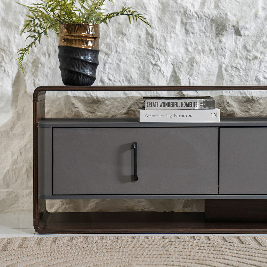 The Atrisa Tv Unit is a luxurious and elegant piece of furniture designed to elevate your living room or entertainment space.