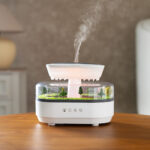Enhance your home with the Aurenza Forest Rain Diffuser, a beautifully designed aromatherapy diffuser featuring a miniature garden scene. Its transparent dome with tiny trees adds a decorative touch, while the ultrasonic mist technology gently releases your favorite essential oils to create a calm and refreshing atmosphere.