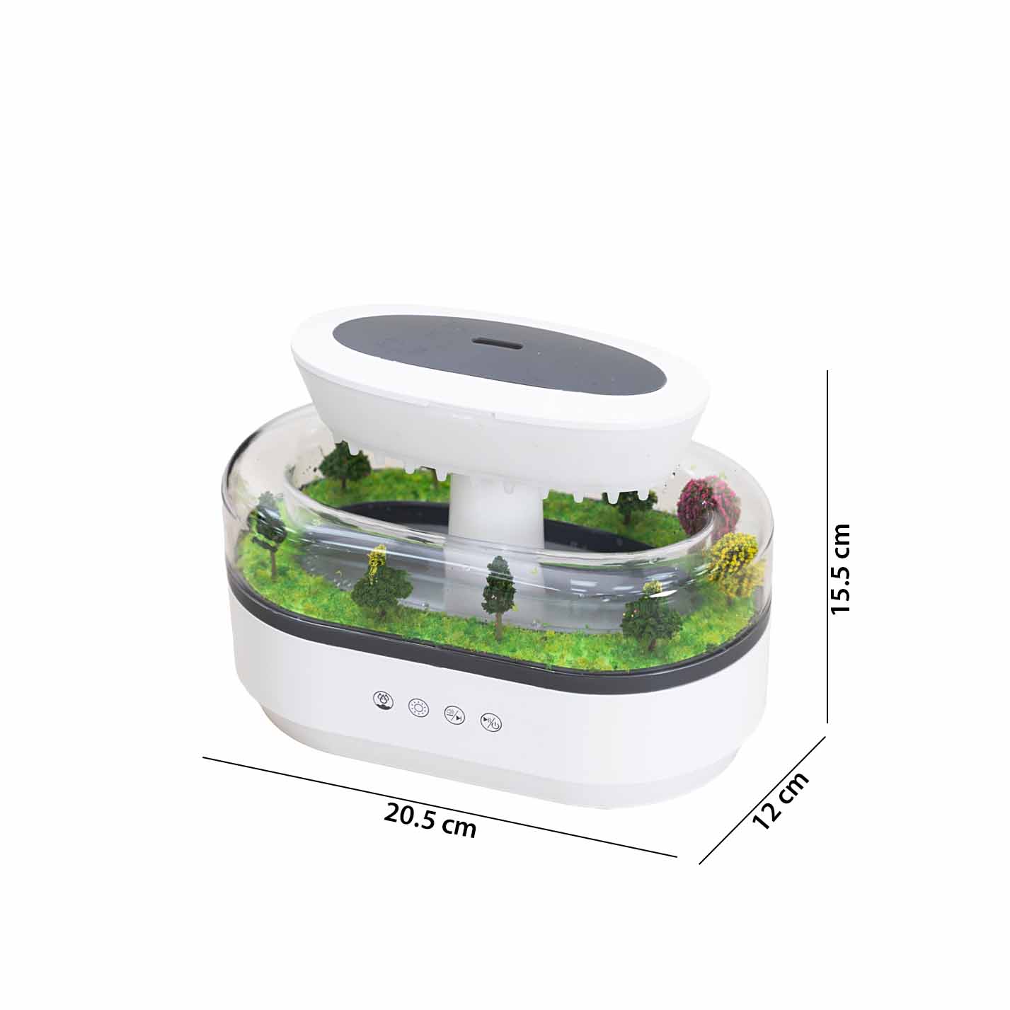 Enhance your home with the Aurenza Forest Rain Diffuser, a beautifully designed aromatherapy diffuser featuring a miniature garden scene. Its transparent dome with tiny trees adds a decorative touch, while the ultrasonic mist technology gently releases your favorite essential oils to create a calm and refreshing atmosphere.