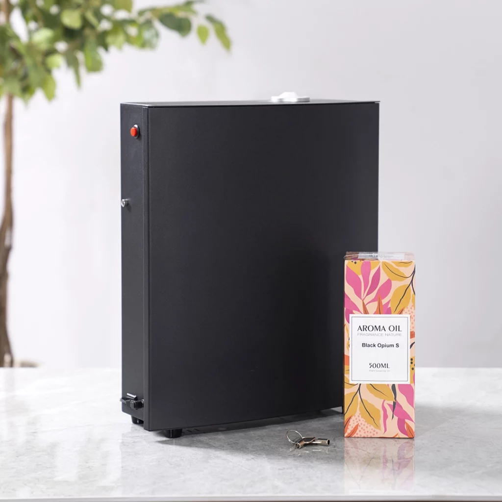 The Aurenza Industrial Aroma Diffuser is a powerful electric diffuser designed to efficiently cover spaces up to 3000m³. With its sleek black finish, it delivers consistent fragrance distribution, making it ideal for commercial and large residential environments. catridge lasting from 45 to 60 days making it highly reliable.