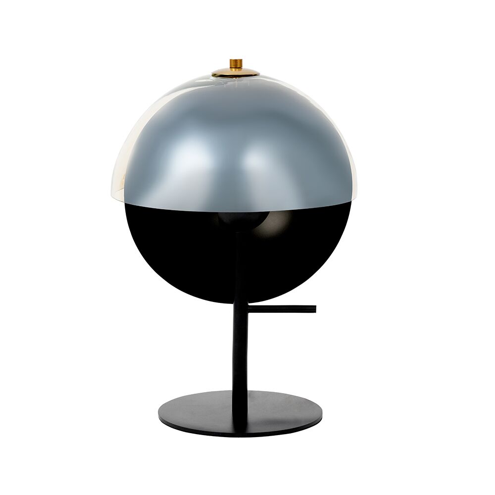 Atop the metal base sits a sleek glass lampshade, adding a touch of transparency and sophistication to the design. The glass gently diffuses the light emitted by the bulb, creating a soft and inviting ambiance that enhances the atmosphere of any room.