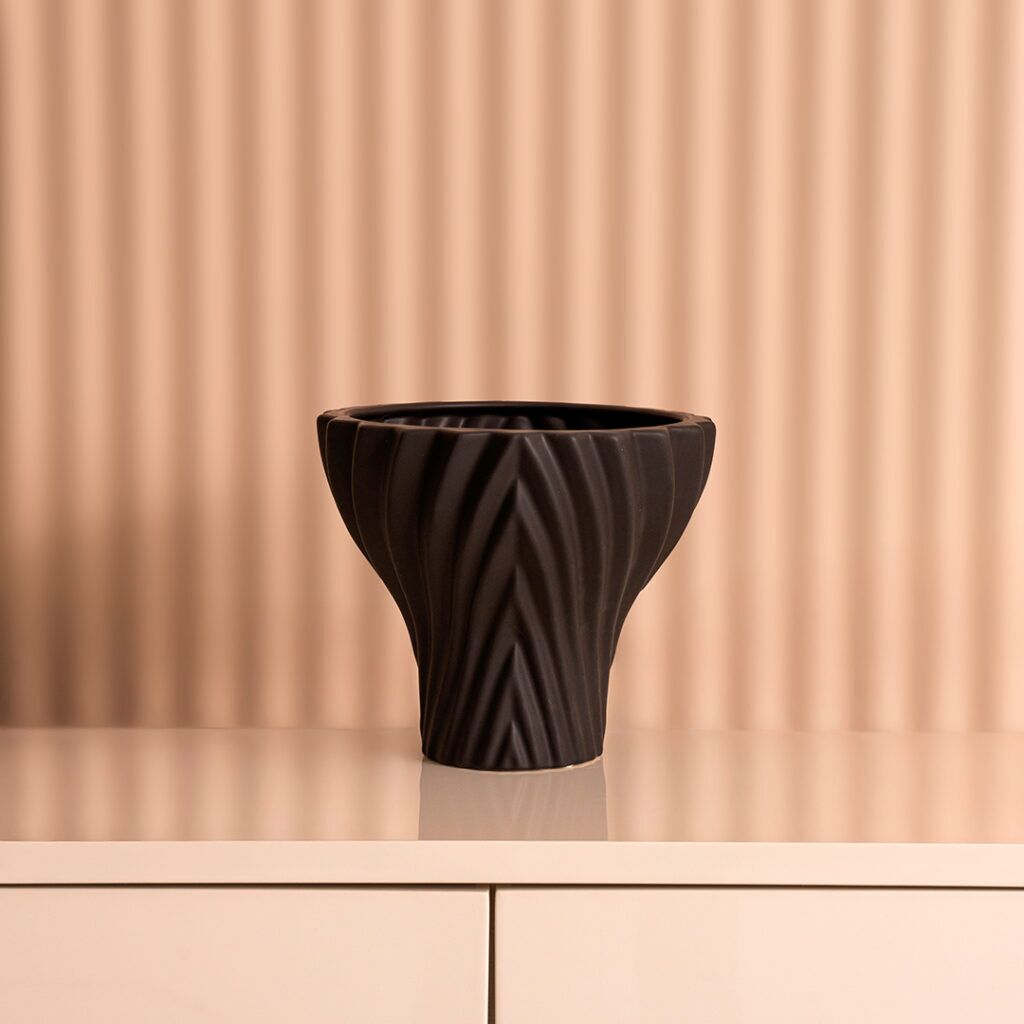 The blenka ceramic black vase blends classic elegance with a sleek black finish, making it a stylish statement piece for any space.