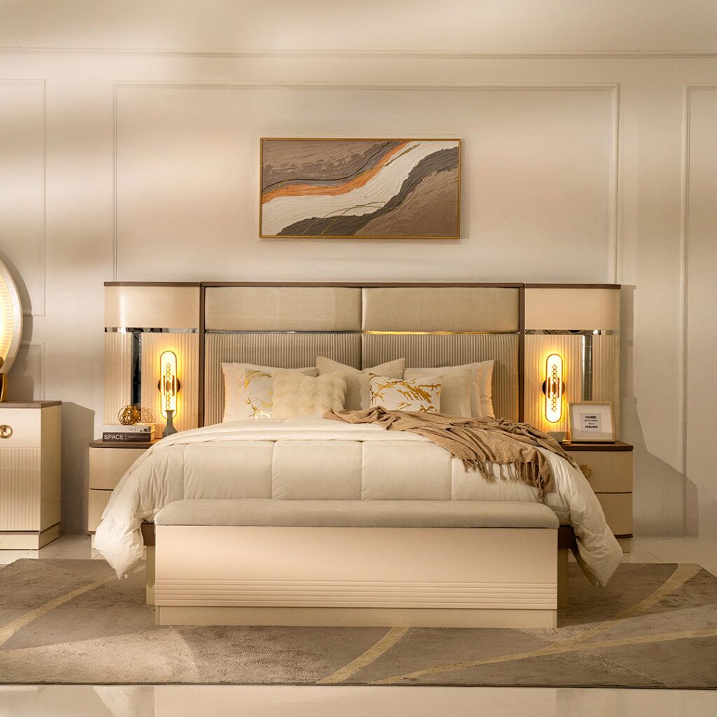 | Set Includes | 1 Bed+2 Nightstand+1 Dresser+1 Stool+1 Wardrobe+Bench |
