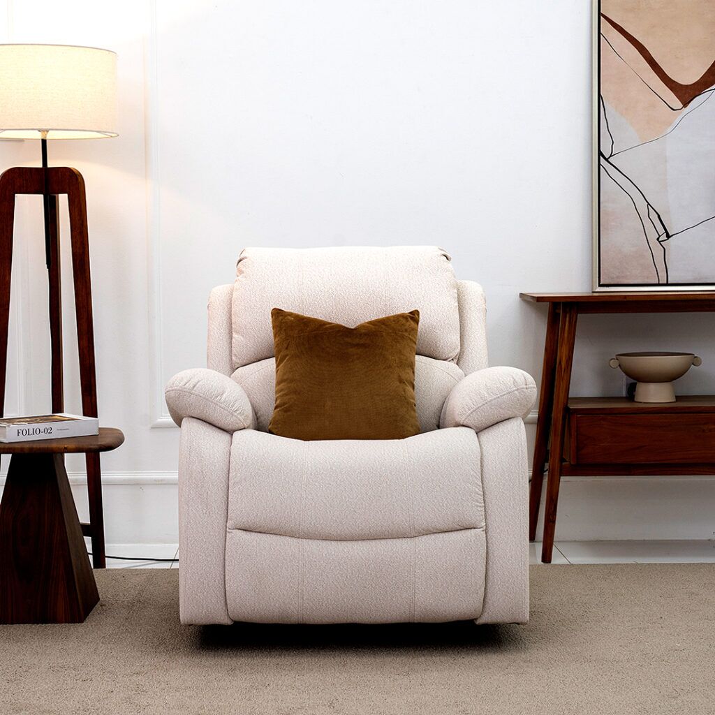 Bruno Single recliner offers ultimate comfort with an adjustable backrest and footrest, allowing you to relax in multiple positions. Perfect for lounging and ergonomic support.