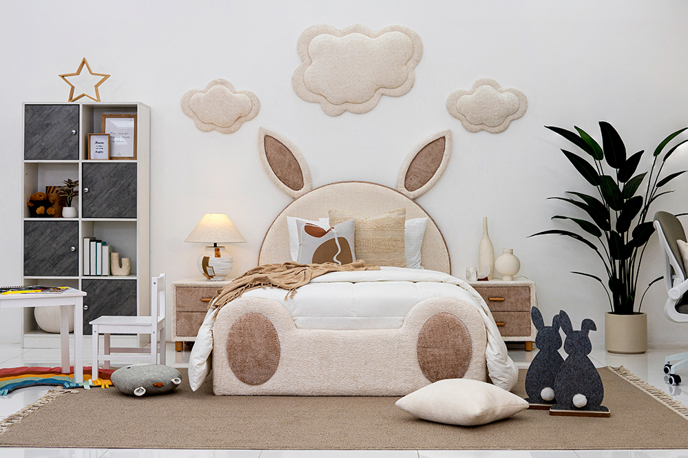 The Bunny Kids Headboard is a playful and charming piece designed to bring comfort and style to any child’s room. Made to order, you can customize the fabric and color to perfectly match your bedroom and personal style.