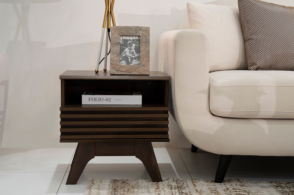 Embrace the warmth of timeless beauty with the Calista End Table – a sweet addition to your living space. Bathed in a rich walnut hue and crafted with precision from engineered wood, this table is a delightful blend of classic charm and modern functionality.