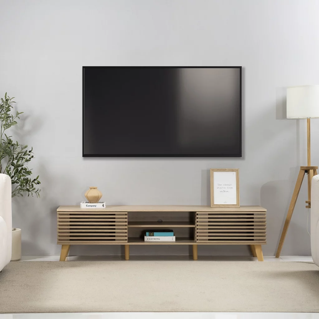 Sleek and functional TV unit designed to organize your media essentials while enhancing your living space with modern style.