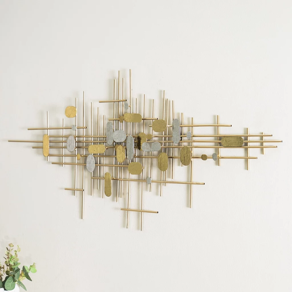 Add a bold, modern artistic accent to your interior with the Castora Metal Wall Decor in striking Gold. This large-scale decorative wall sculpture combines sleek metal craftsmanship with elegant finishes to create a statement piece that enhances a range of décor styles — from contemporary to eclectic.