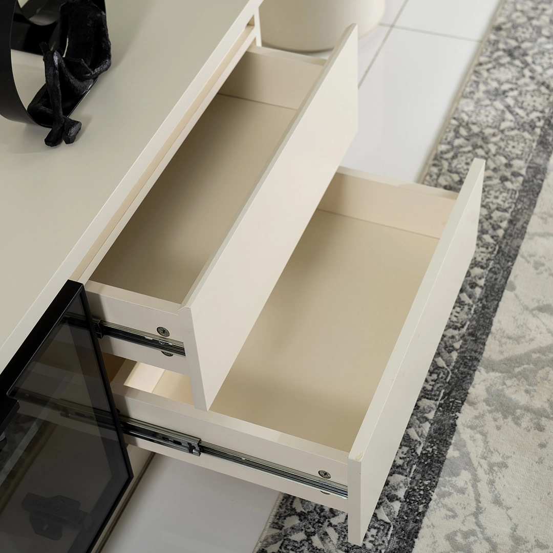The Cicada Tv Unit is a luxurious and elegant piece of furniture designed to elevate your living room or entertainment space.