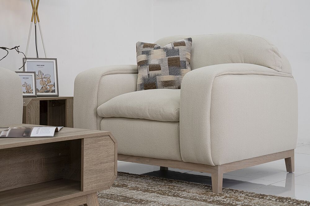 Elevate your home decor with the Cruz Sofa, where the fusion of Beach and White Wood, MDF frame material, and plush foam-filled seating creates a statement of enduring quality and cozy sophistication.