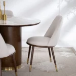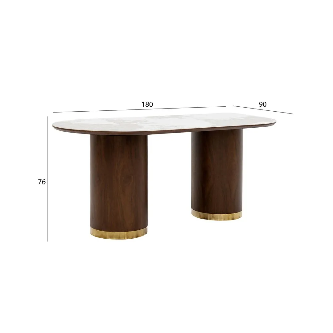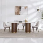 The Crystal 6-Seater Dining Set in Walnut & Beige offers a stunning blend of sophistication and elegance.