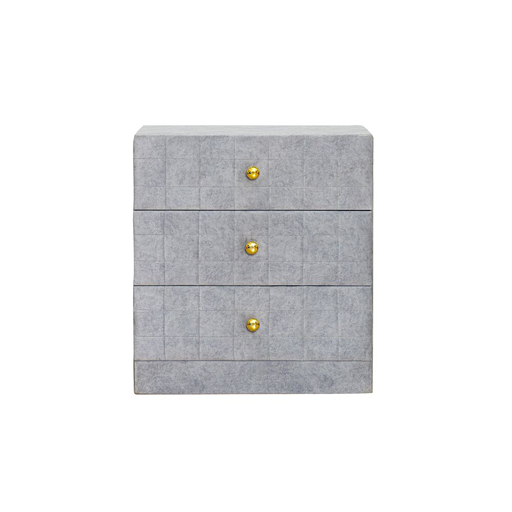 A sleek and functional side table designed to complement modern bedrooms. Made to order, it lets you choose the fabric and color to match your bedroom perfectly.