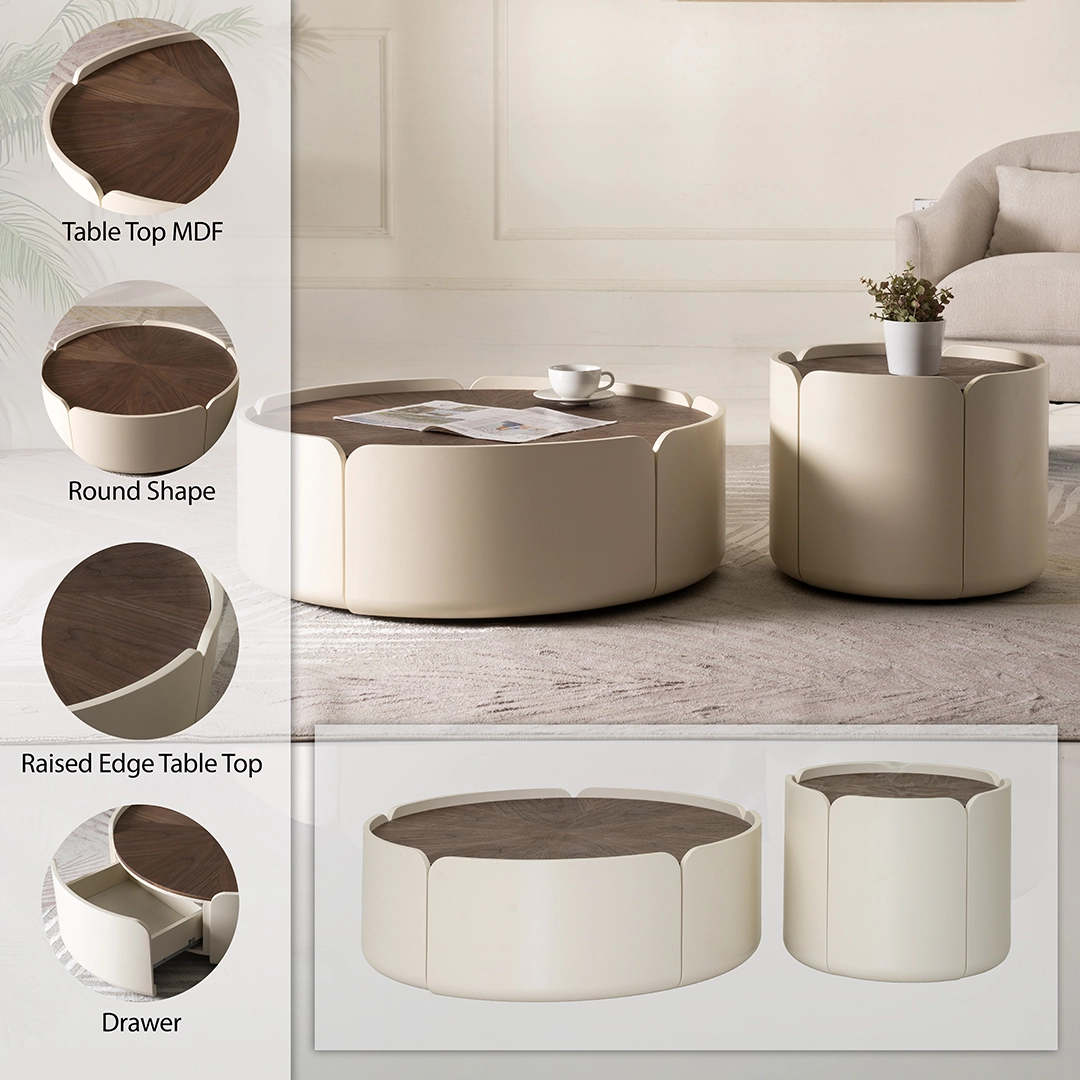 Elegant 2-piece set offers a main coffee table plus a companion side or nested table — ideal for flexible living-space arrangements.