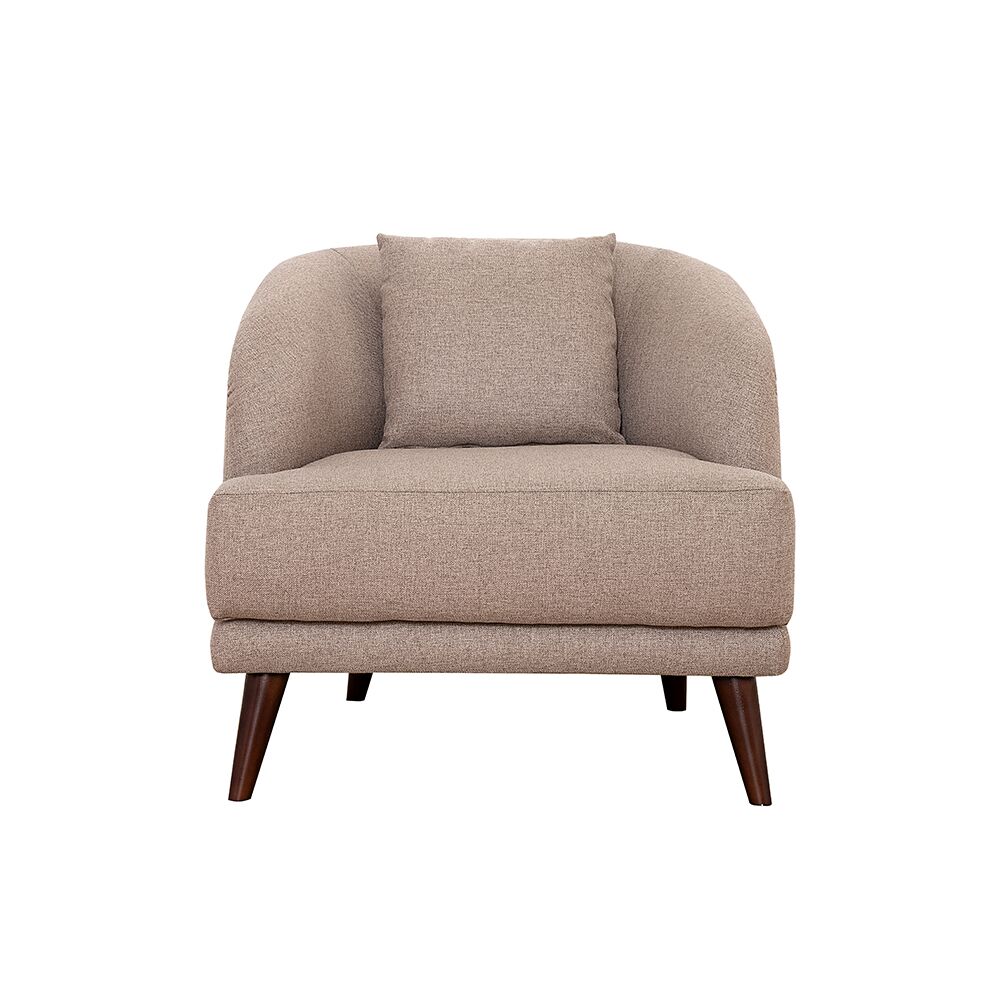 Discover the Dallas Arm Chair – now elevated with the addition of throw pillows and a refined round arm style. This chair effortlessly combines comfort and contemporary design, making it a perfect addition to any space.