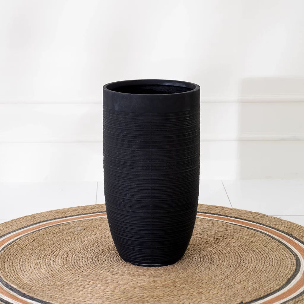 A stylish fiber vase with a modern finish, perfect for adding texture and elegance to any room or floral arrangement.