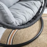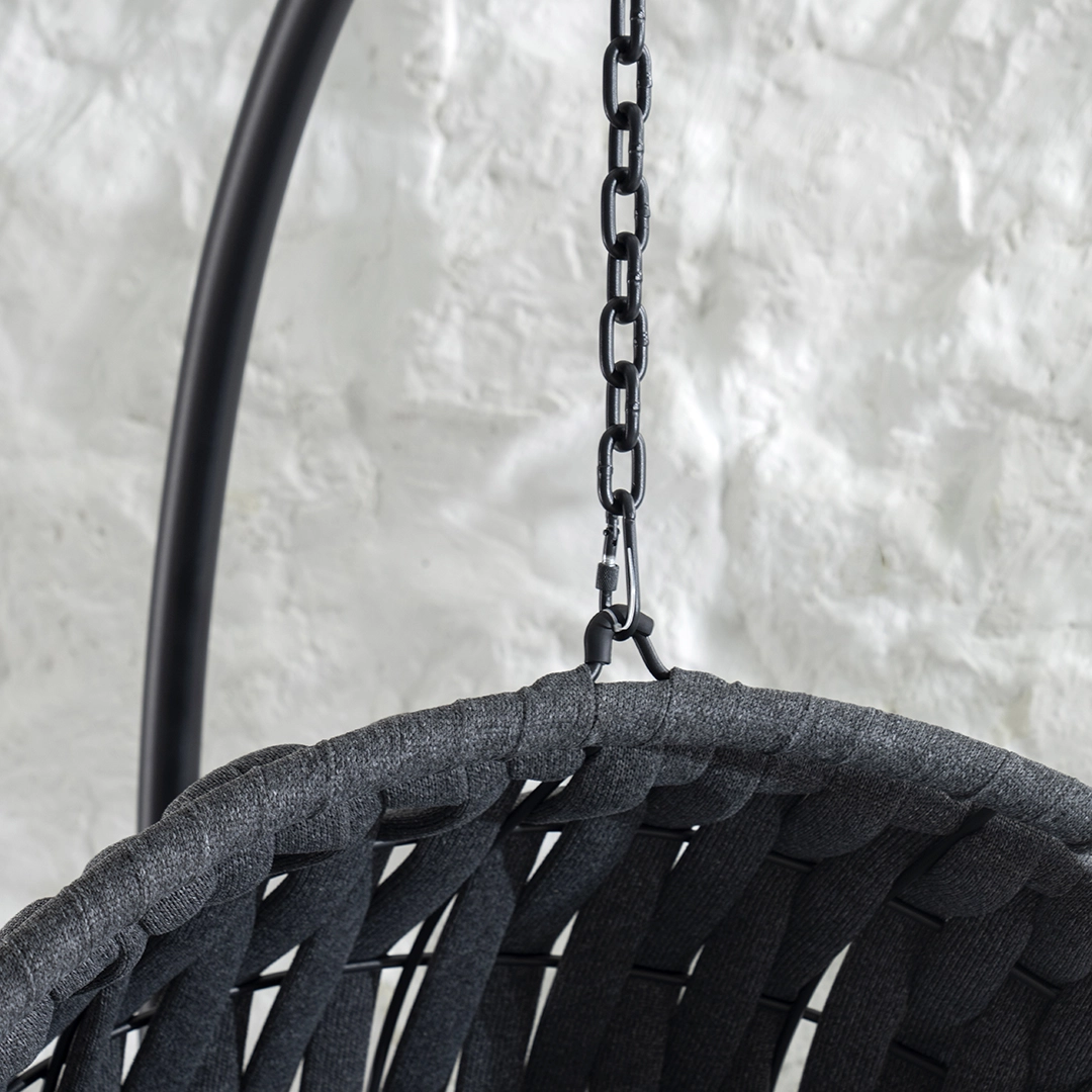 The Darius swinging chair in sand brings serene comfort and timeless charm—crafted for effortless relaxation with a soft, soothing sway.