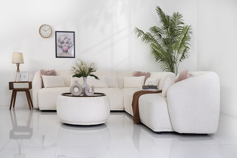 Elevate your living space with this elegant and comfortable corner sofa, where modern design seamlessly meets the sumptuous texture of premium fabric and the supportive feel of PU foam.