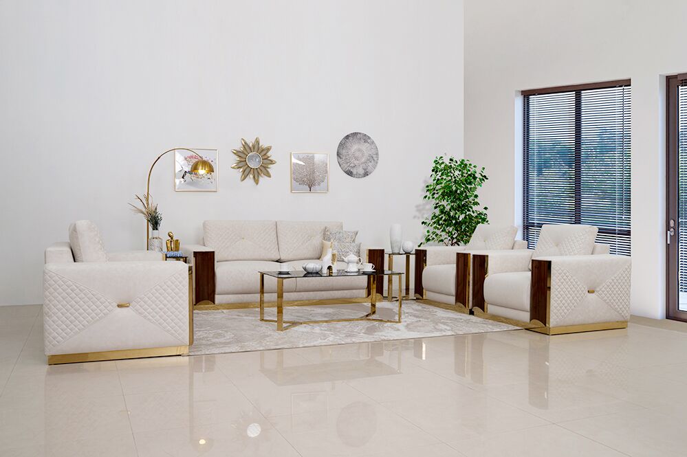 Introducing Diya Sofa Set, a luxurious seating ensemble that comes complete with seven elegant throw pillows. This set is designed with comfort in mind, featuring a soft foam density of 30 for an indulgent lounging experience.