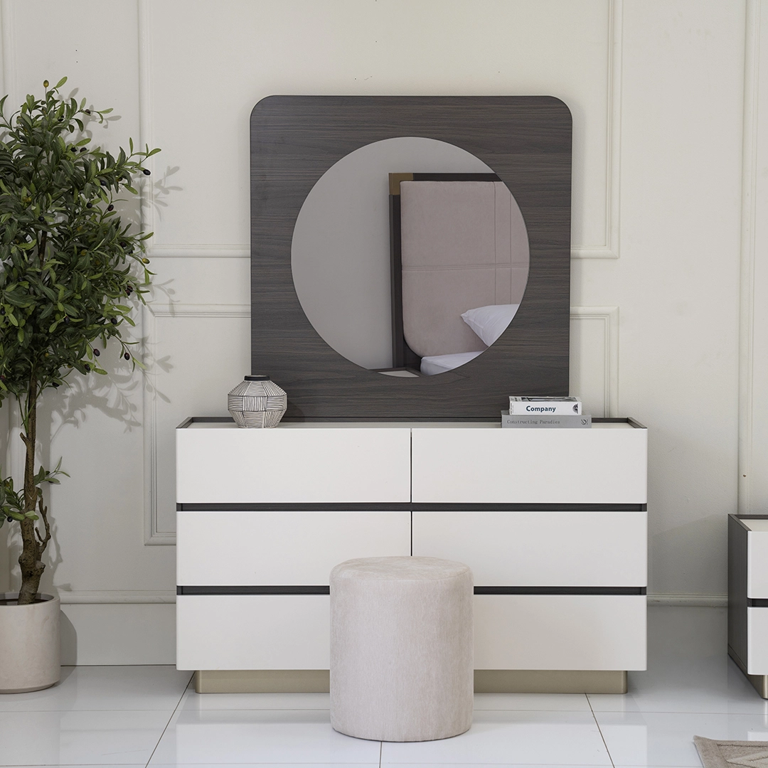 Elevate your bedroom with this contemporary luxury bedroom set designed for both style and functionality. Finished in an elegant dark tone with warm accents, this set creates a calm, sophisticated ambiance while offering smart solutions for modern living.