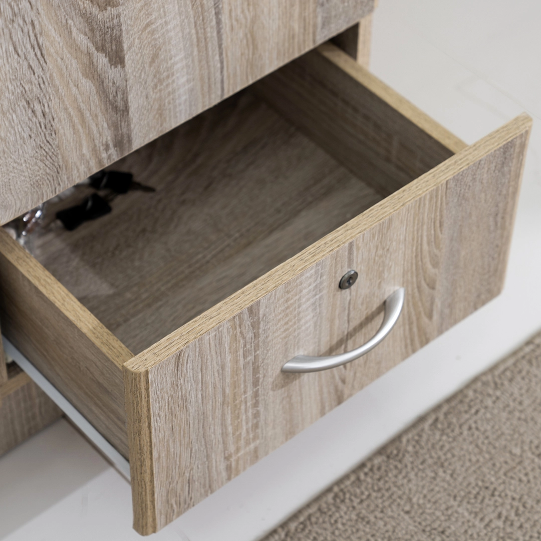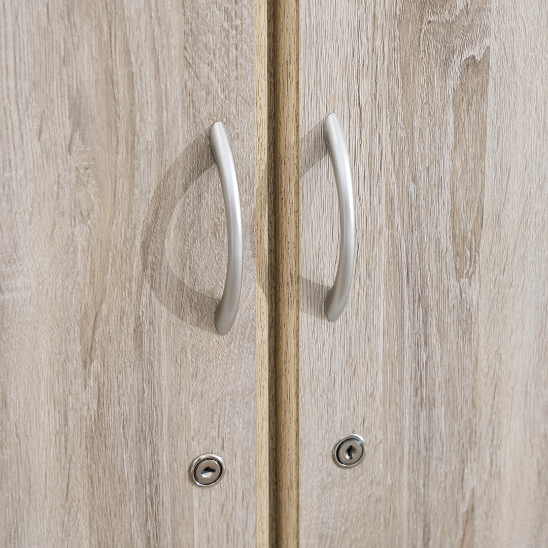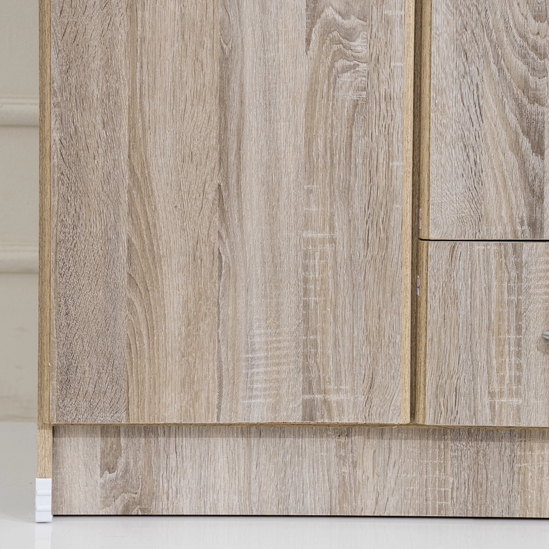 The DONNI is a 2-door wardrobe finished in a Sonoma Oak colour — a light, natural oak shade that blends easily with modern or contemporary bedroom décor. It offers a practical solution for organizing clothing while saving space.