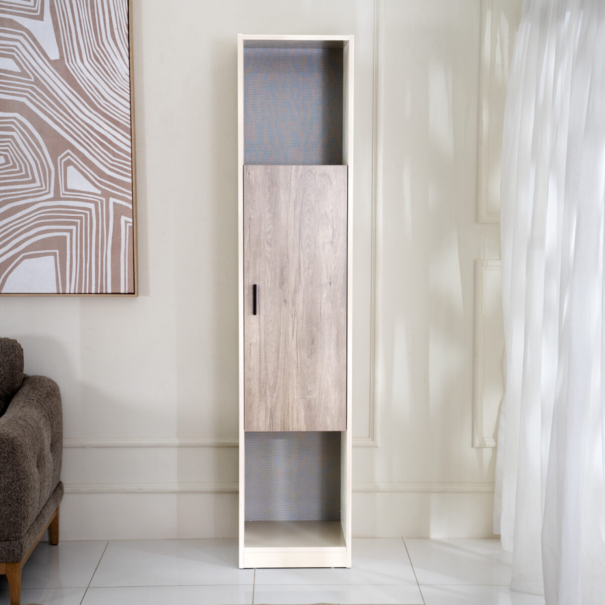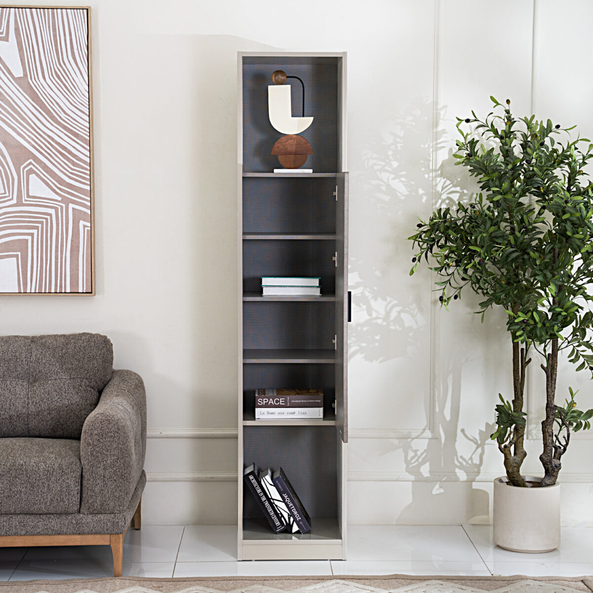 Add a touch of sophistication and smart storage to your living space with the Dudley High Cabinet. Designed with a perfect balance of style and functionality, this cabinet features multiple shelves and compartments to organize your essentials with ease.