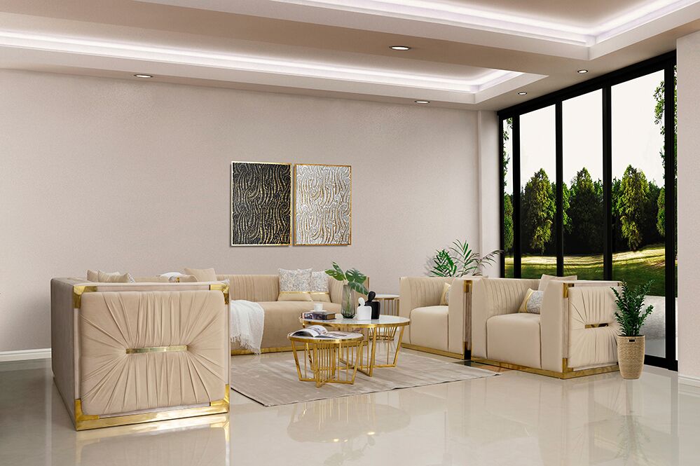 Set Includes: 3 Seater + 2 Seater +1 Seater +1 Seater Full Set In Fabric