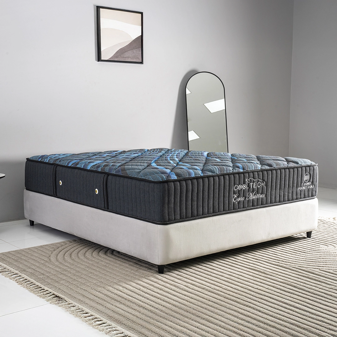 Experience superior comfort with our 7-zone pocket spring mattress, enhanced with gel-infused memory foam. Designed to support the natural contours of the body, it targets seven key areas — head, chest, lower back, pelvis, hips, legs, and feet — for balanced comfort and proper spinal alignment. Individually wrapped barrel-shaped coils minimize motion transfer while providing tailored support, and the cooling gel layer regulates temperature for a refreshing and restful night’s sleep.