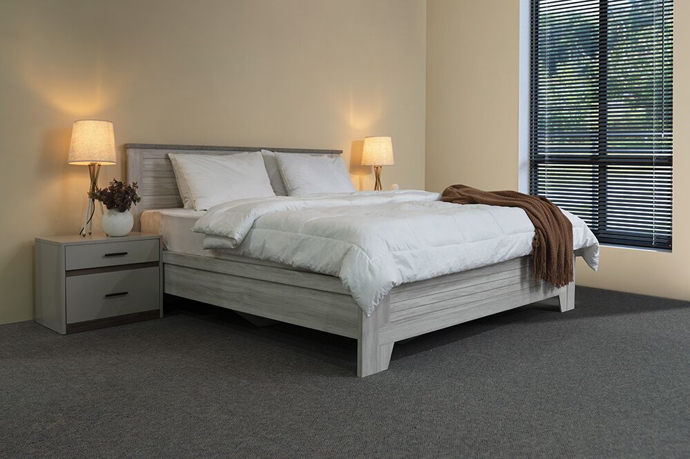Introducing the Elegance Bed, crafted with a foundation of paper-laminated chipboard material for a perfect blend of sophistication and durability.