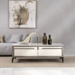 The frame of the Eyfel Coffee Table is constructed with wood, contributing to its natural and timeless aesthetic. The combination of Glass Top and mdf materials creates a harmonious blend, adding warmth and character to the table’s design.