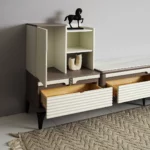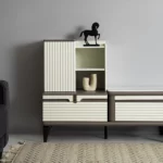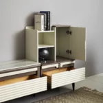 Modern and versatile, this sleek TV unit features smooth curved edges, ample storage, and an extendable design that easily adjusts in length—making it larger or smaller to perfectly fit your space.