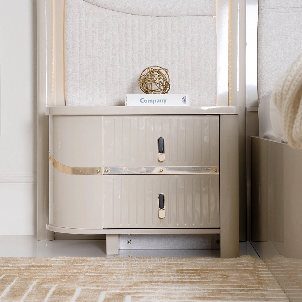 Elevate your bedroom with this contemporary luxury bedroom set designed for both style and functionality. Finished in an elegant dark tone with warm accents, this set creates a calm, sophisticated ambiance while offering smart solutions for modern living.