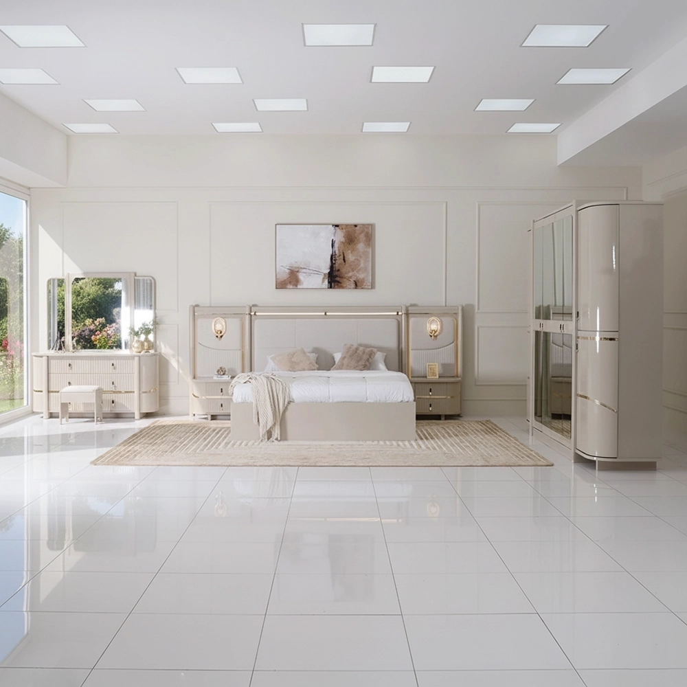 | Set Includes | 1 Bed+2 Nightstand+1 Dresser with Mirror +1 Stool + 1 Wardrobe |