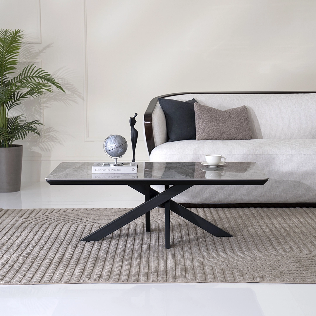 The Florence Center Table is a striking and contemporary piece of furniture that combines the elegance of a sintered stone top with the sleekness of a metal base.