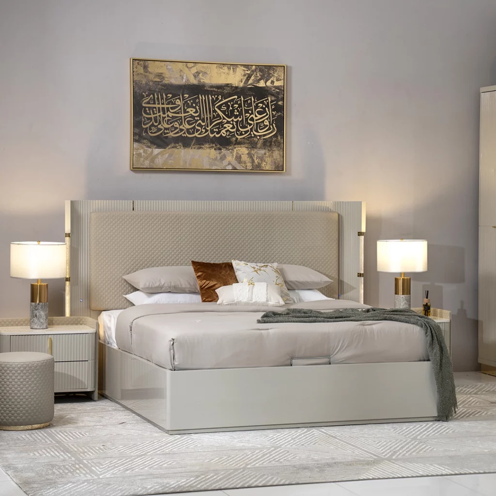 | Set Includes | 1 Bed+2 Side Table+1 Dresser with Mirror +1 Stool + 1 Wardrobe |