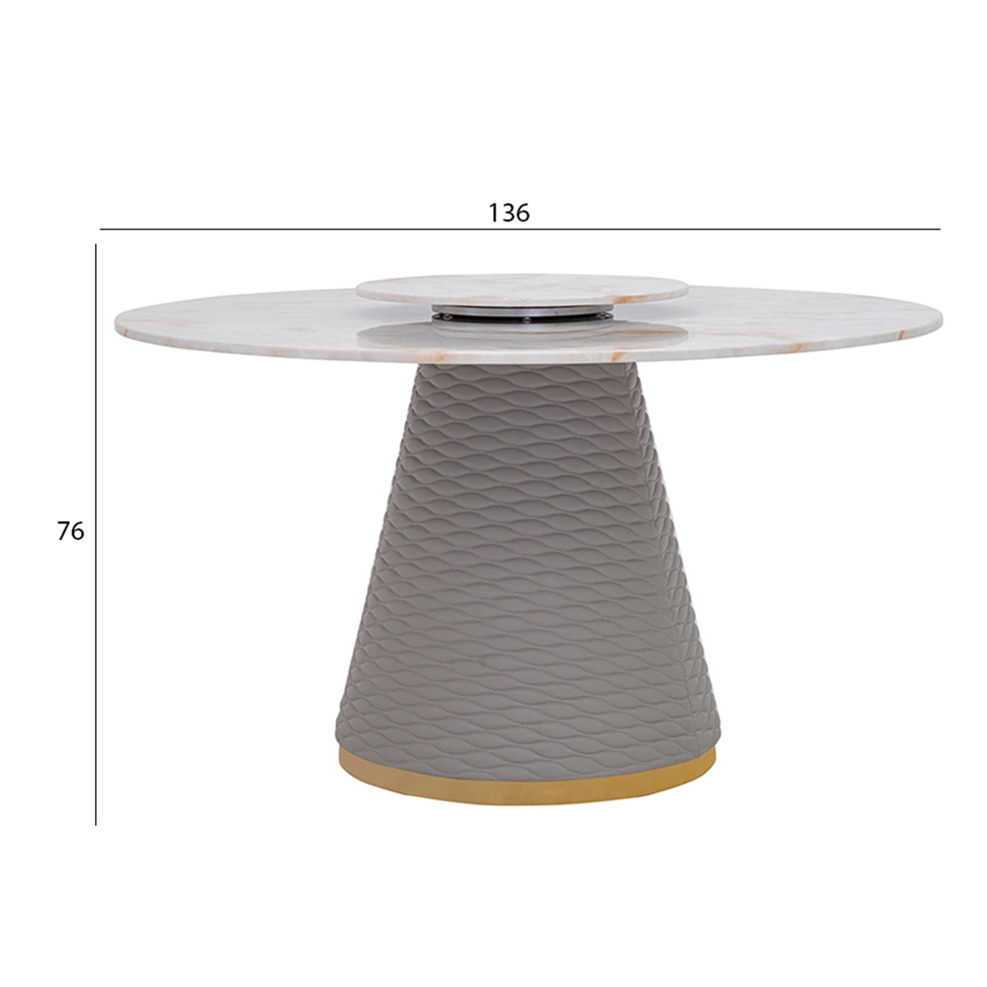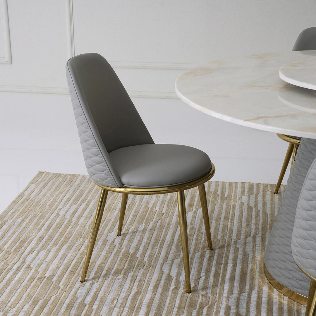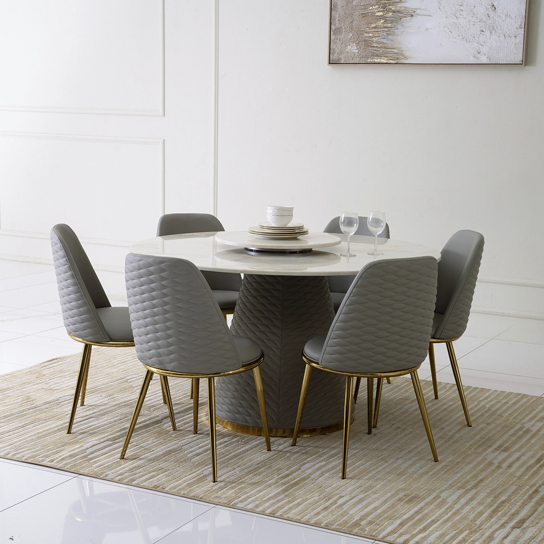 Transform your dining room into a sophisticated haven with the Galaxy Dining Set, where Faux Marble, Metal, and Faux Leather converge in a perfect fusion of style and functionality, bringing a timeless and elegant touch to every meal.