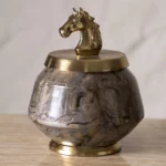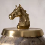 This exquisite Galiora Horse Trinket Jar combines artistic elegance with practical storage. Featuring a refined gold and grey palette and a stylish horse-inspired design element, this jar is both a decorative showpiece and a functional accessory for organizing small items. Its sculptural look adds a luxurious, equestrian-themed accent to any room.