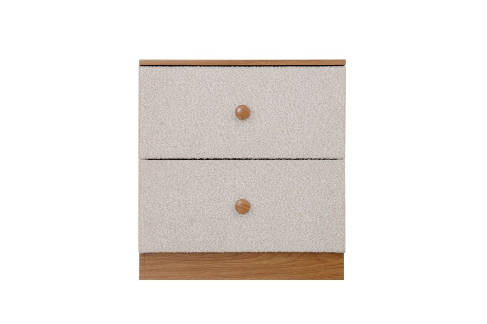 A sleek and functional side table designed to complement modern bedrooms. Made to order, it lets you choose the fabric and color to match your bedroom perfectly.