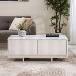 Add a touch of elegance and modern flair to your living space with this stunning Glass Top Coffee Table.