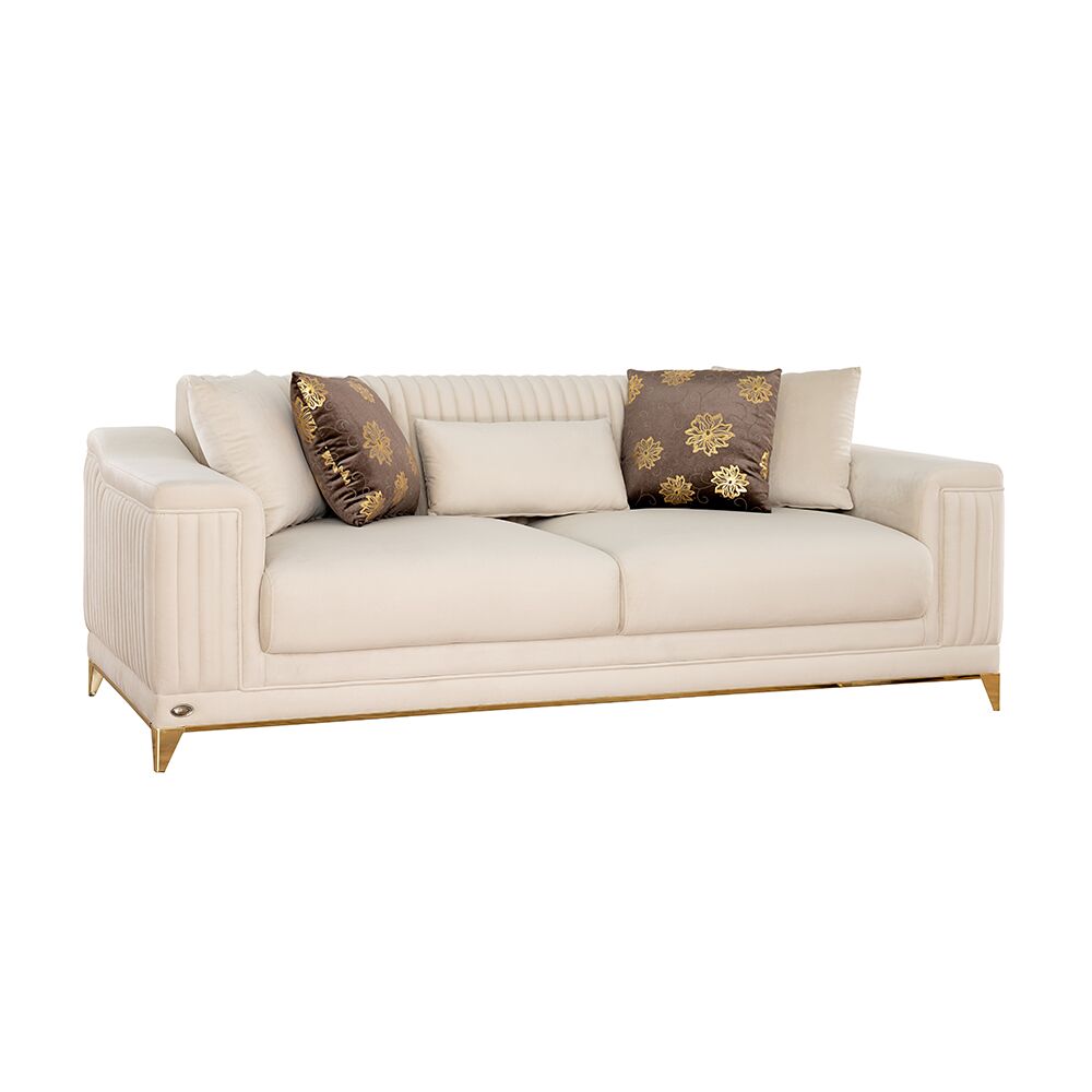 Elevate your home decor with the Giselle Sofa, where the fusion of Beach and White Wood, along with MDF frame material, creates a statement of both style and resilience.